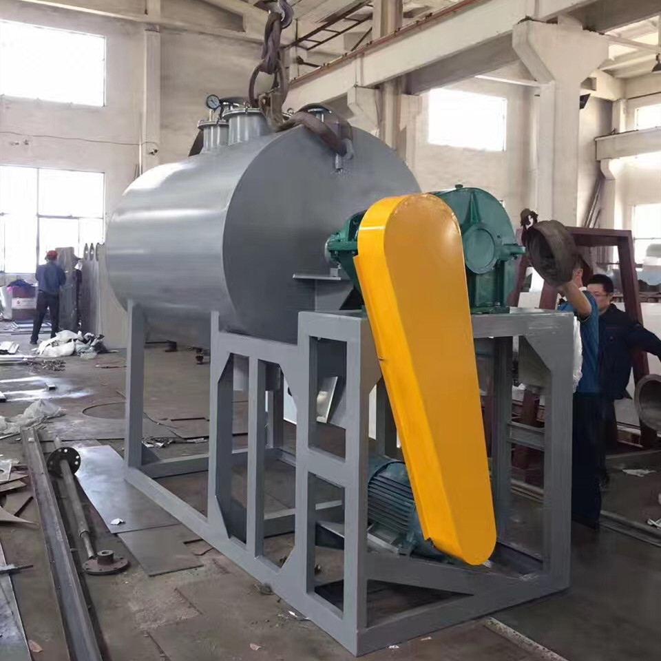 Le matériel à sécher est ajouté de la partie supérieure de la partie supérieure de l'enveloppe. Sous l'agitation des dents tournant sans interruption, le matériel se déplace axialement dans les deux sens, et la surface en contact avec la paroi intérieure du carter est sans interruption mise à jour, et est chauffée indirectement par la vapeur ou le pétrole de transfert de chaleur. Remuant également, pulvérisant la tige de pulvérisation, vaporisant l'eau dans le matériel, et sous l'action du système de vide, l'humidité interne et l'humidité extérieure du produit solide plus avantageusement sont déchargées, et l'eau vaporisée est déchargée du débouché de la pompe à vide.